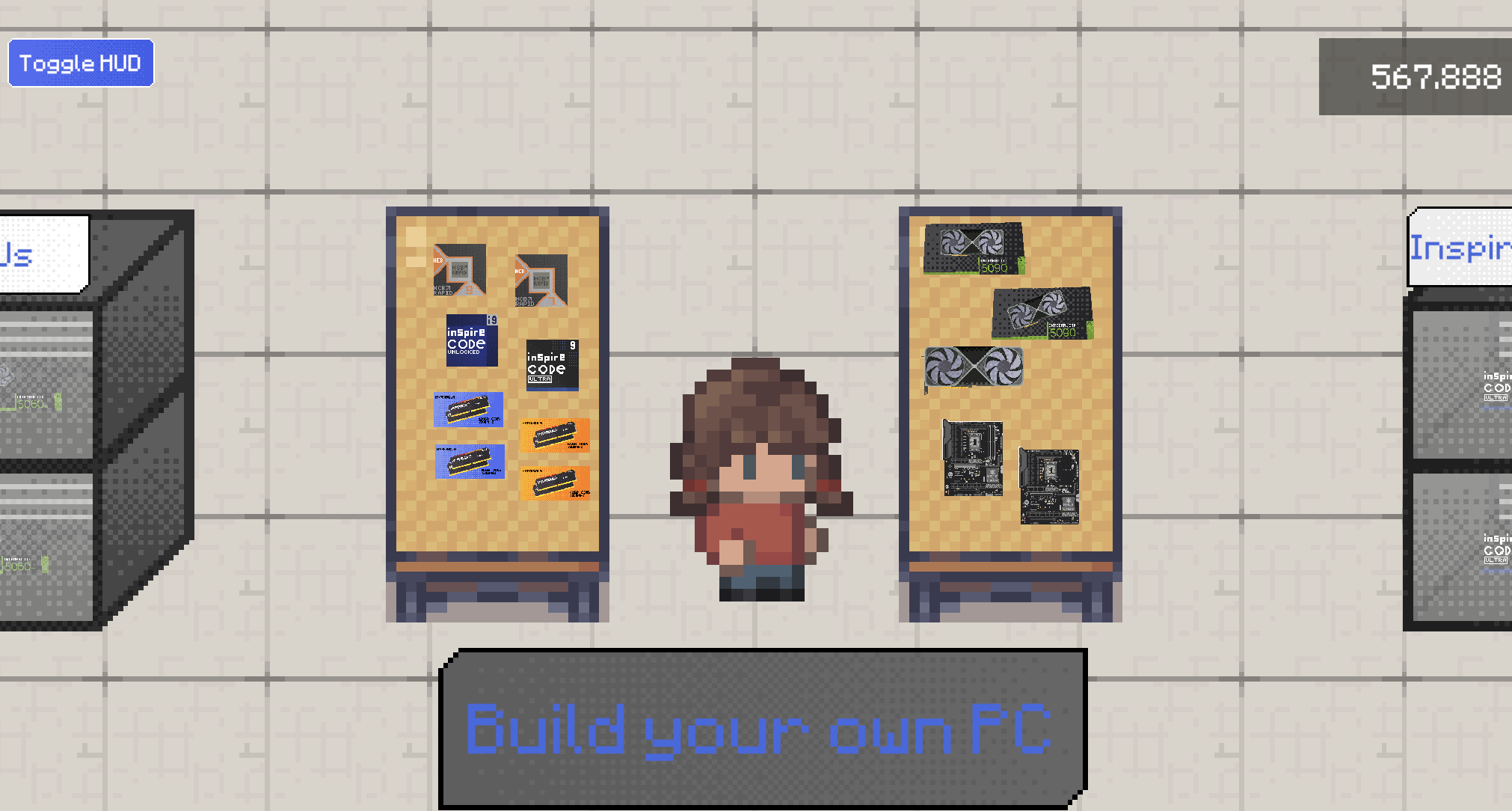 Welcome to Micro Builders! You work at a computer store and build PCs for customers. But the customers can be on a tight budget, and you can't always use the highest performance components. Will you sacrifice your GPU to afford more RAM, or will that shiny 5090 take precedence over the other lightning rocks?